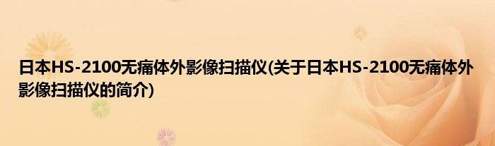 本文关于日本HS-2100无痛体外影像扫描仪的简介就讲解完毕,希望对大家有所帮助。