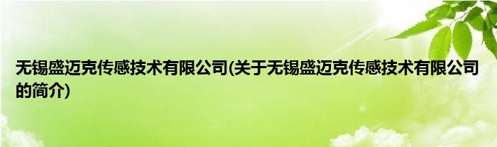 本文关于无锡盛迈克传感技术有限公司的简介就讲解完毕,希望对大家有所帮助。