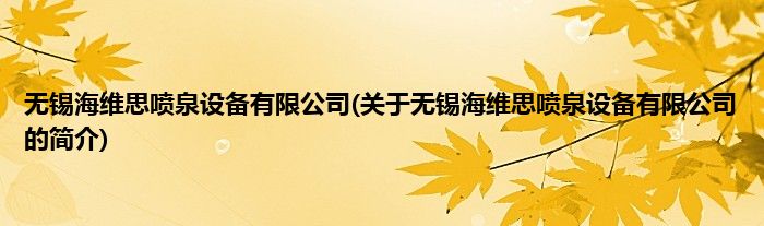 本文关于无锡海维思喷泉设备有限公司的简介就讲解完毕,希望对大家有所帮助。