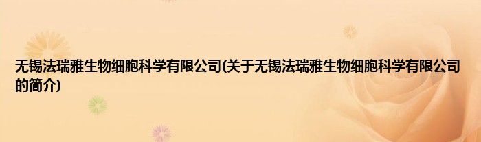 本文关于无锡法瑞雅生物细胞科学有限公司的简介就讲解完毕,希望对大家有所帮助。