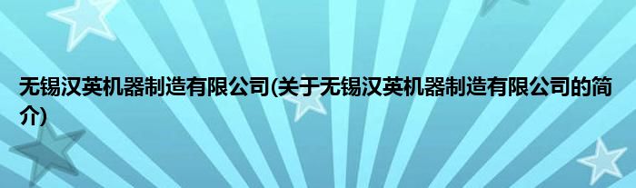 本文关于无锡汉英机器制造有限公司的简介就讲解完毕,希望对大家有所帮助。