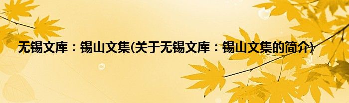 本文关于无锡文库:锡山文集的简介就讲解完毕,希望对大家有所帮助。