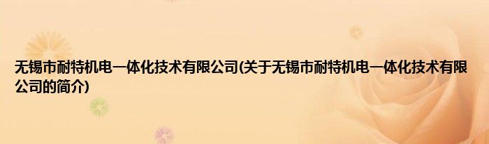 本文关于无锡市耐特机电一体化技术有限公司的简介就讲解完毕,希望对大家有所帮助。