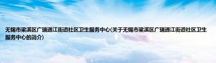 本文关于无锡市梁溪区广瑞通江街道社区卫生服务中心的简介就讲解完毕,希望对大家有所帮助。