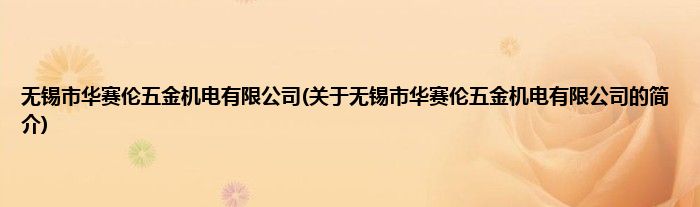 本文关于无锡市华赛伦五金机电有限公司的简介就讲解完毕,希望对大家有所帮助。