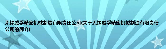 本文关于无锡威孚精密机械制造有限责任公司的简介就讲解完毕,希望对大家有所帮助。