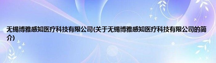 本文关于无锡博雅感知医疗科技有限公司的简介就讲解完毕,希望对大家有所帮助。
