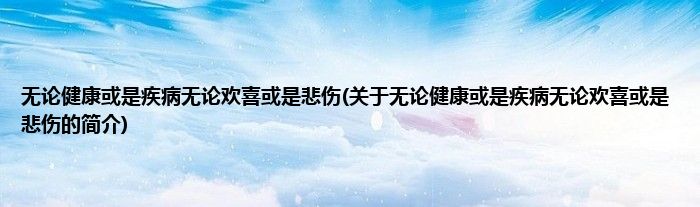 大家好,无论健康或是疾病无论欢喜或是悲伤,关于无论健康或是疾病无论欢喜或是悲伤的简介很多人还不知道,现在让我们一起来看看吧!