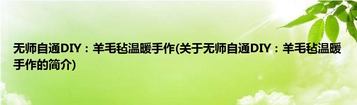 大家好,无师自通DIY:羊毛毡温暖手作,关于无师自通DIY:羊毛毡温暖手作的简介很多人还不知道,现在让我们一起来看看吧!
