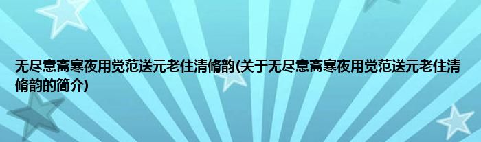 本文关于无尽意斋寒夜用觉范送元老住清脩韵的简介就讲解完毕,希望对大家有所帮助。