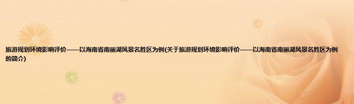 本文关于旅游规划环境影响评价——以海南省南丽湖风景名胜区为例的简介就讲解完毕,希望对大家有所帮助。
