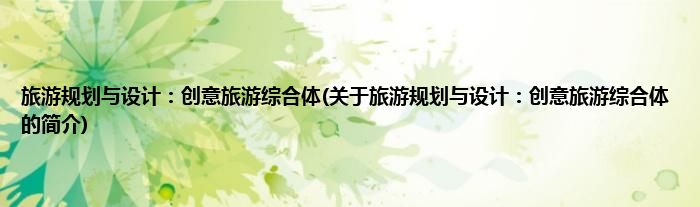本文关于旅游规划与设计:创意旅游综合体的简介就讲解完毕,希望对大家有所帮助。