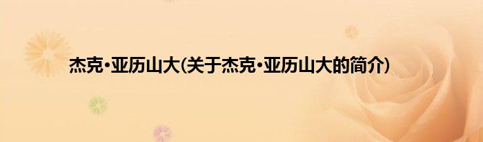 大家好,杰克·亚历山大,关于杰克·亚历山大的简介很多人还不知道,现在让我们一起来看看吧!