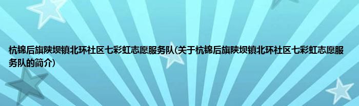 本文关于杭锦后旗陕坝镇北环社区七彩虹志愿服务队的简介就讲解完毕,希望对大家有所帮助。