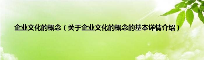 本文关于企业文化的概念的基本详情介绍就讲解完毕,希望对大家有所帮助。