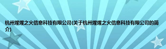 本文关于杭州煋煋之火信息科技有限公司的简介就讲解完毕,希望对大家有所帮助。