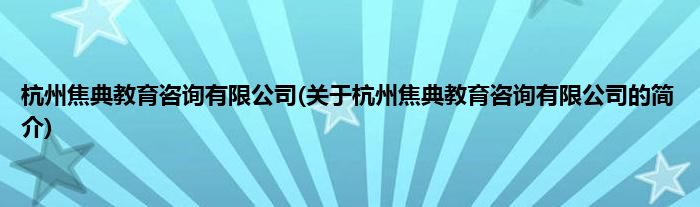 本文关于杭州焦典教育咨询有限公司的简介就讲解完毕,希望对大家有所帮助。