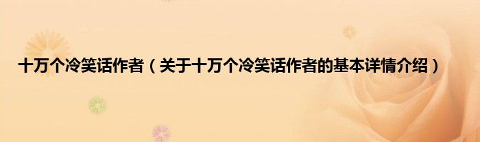 本文关于十万个冷笑话作者的基本详情介绍就讲解完毕,希望对大家有所帮助。