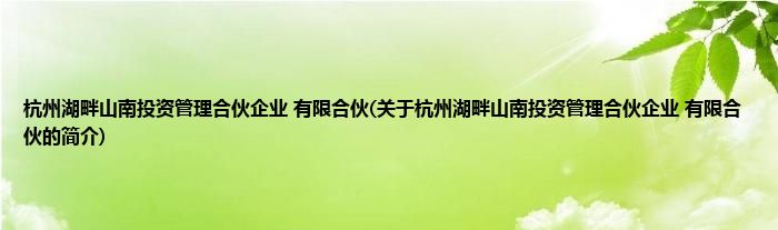 本文关于杭州湖畔山南投资管理合伙企业 有限合伙的简介就讲解完毕,希望对大家有所帮助。