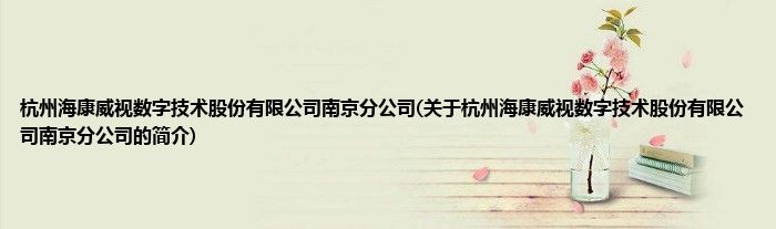 大家好,杭州海康威视数字技术股份有限公司南京分公司,关于杭州海康威视数字技术股份有限公司南京分公司的简介很多人还不知道,现在让我们一起来看看吧!