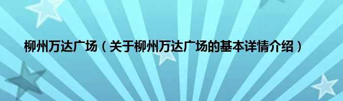 本文关于柳州万达广场的基本详情介绍就讲解完毕,希望对大家有所帮助。
