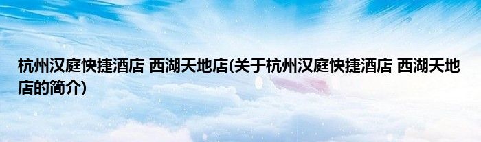最佳答案大家好,杭州汉庭快捷酒店 西湖天地店,关于杭州汉庭快捷酒店 西湖天地店的简介很多人还不知道,现在让我们一起来看看吧! 1、 杭州汉庭快捷酒店(西湖天地店)是位于西湖风景区的一家二星级酒店。本文关于杭州汉庭快捷酒店 西湖天地店的简介就讲解完毕,希望对大家有所帮助。