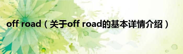 本文关于off road的基本详情介绍就讲解完毕,希望对大家有所帮助。