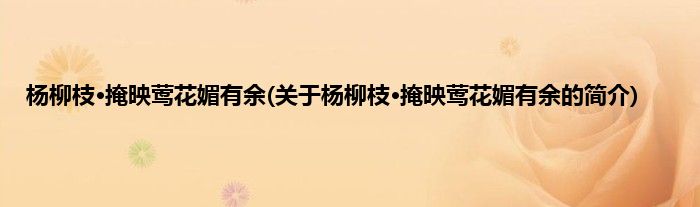 本文关于杨柳枝·掩映莺花媚有余的简介就讲解完毕,希望对大家有所帮助。