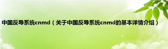 2、是中国国家导弹防御系统(Chinese National Missile Defence )的简称。