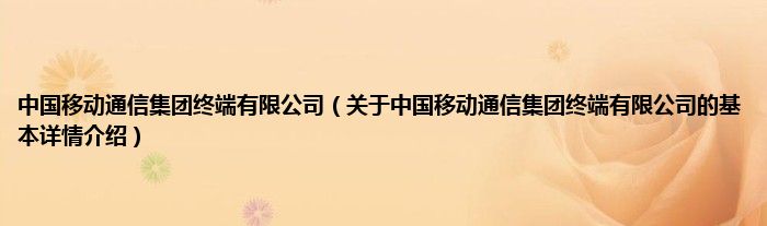 本文关于中国移动通信集团终端有限公司的基本详情介绍就讲解完毕,希望对大家有所帮助。