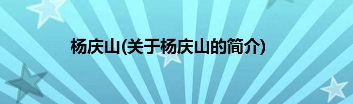 大家好,杨庆山,关于杨庆山的简介很多人还不知道,现在让我们一起来看看吧!