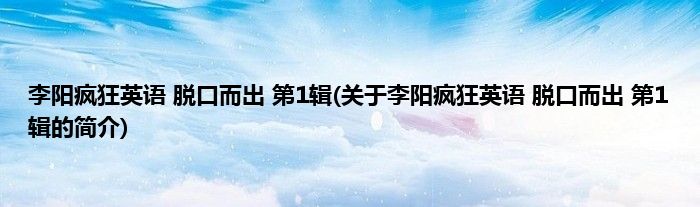 本文关于李阳疯狂英语。脱口而出 第1辑的简介就讲解完毕,希望对大家有所帮助。