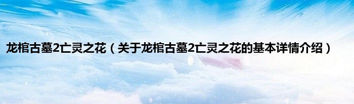 本文关于龙棺古墓2亡灵之花的基本详情介绍就讲解完毕,希望对大家有所帮助。