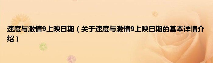 本文关于速度与激情9上映日期的基本详情介绍就讲解完毕,希望对大家有所帮助。
