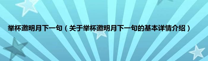 本文关于举杯邀明月下一句的基本详情介绍就讲解完毕,希望对大家有所帮助。