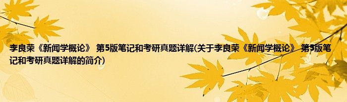 本文关于李良荣《新闻学概论》 第5版笔记和考研真题详解的简介就讲解完毕,希望对大家有所帮助。