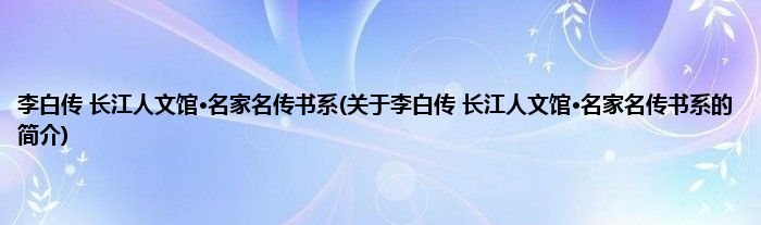 本文关于李白传 长江人文馆·名家名传书系的简介就讲解完毕,希望对大家有所帮助。