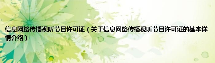 本文关于信息网络传播视听节目许可证的基本详情介绍就讲解完毕,希望对大家有所帮助。