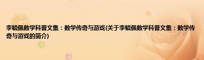 本文关于李毓佩数学科普文集:数学传奇与游戏的简介就讲解完毕,希望对大家有所帮助。