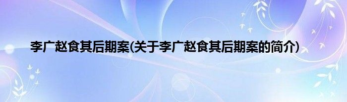 本文关于李广赵食其后期案的简介就讲解完毕,希望对大家有所帮助。