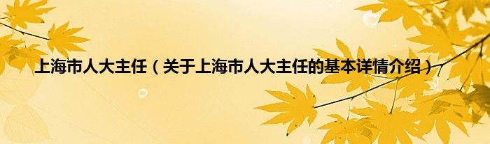 本文关于上海市人大主任的基本详情介绍就讲解完毕,希望对大家有所帮助。