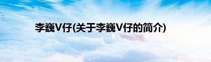 本文关于李巍V仔的简介就讲解完毕,希望对大家有所帮助。