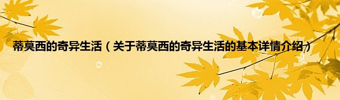 本文关于蒂莫西的奇异生活的基本详情介绍就讲解完毕,希望对大家有所帮助。