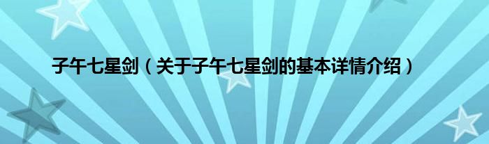 本文关于子午七星剑的基本详情介绍就讲解完毕,希望对大家有所帮助。
