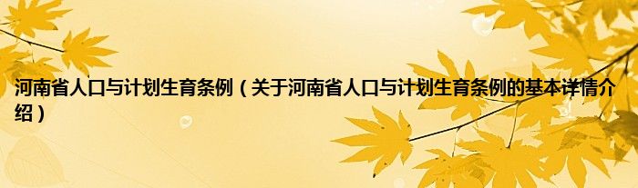 本文关于河南省人口与计划生育条例的基本详情介绍就讲解完毕,希望对大家有所帮助。