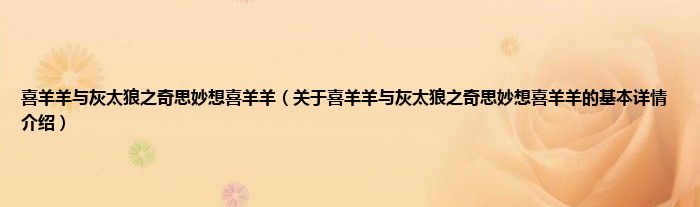 本文关于喜羊羊与灰太狼之奇思妙想喜羊羊的基本详情介绍就讲解完毕,希望对大家有所帮助。