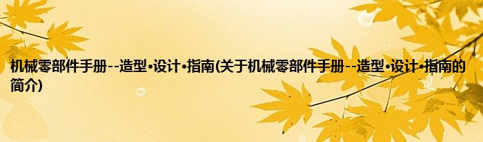 本文关于机械零部件手册--造型·设计·指南的简介就讲解完毕,希望对大家有所帮助。