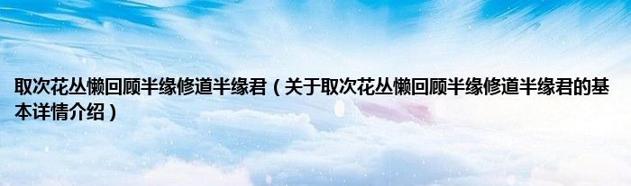 本文关于取次花丛懒回顾半缘修道半缘君的基本详情介绍就讲解完毕,希望对大家有所帮助。