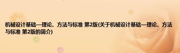大家好,机械设计基础—理论、方法与标准 第2版,关于机械设计基础—理论、方法与标准 第2版的简介很多人还不知道,现在让我们一起来看看吧!