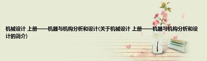 本文关于机械设计 上册——机器与机构分析和设计的简介就讲解完毕,希望对大家有所帮助。